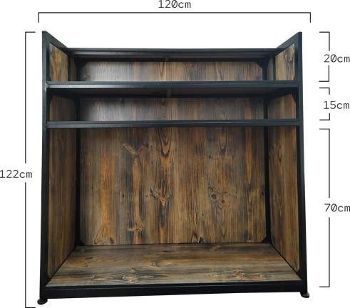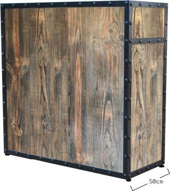 Banco reception per saloni di parrucchieri e barber shop. Realizzato con pannelli in multistrato rivestiti in melaminico con finitura effetto legno rustico.