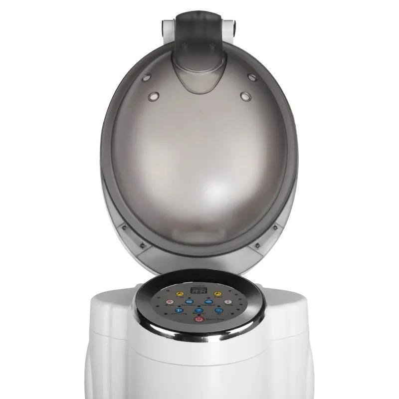 Combina vaporizzatore per idratazione profonda e ozonizzazione attiva; pannello digitale con timer regolabile fino a 60 minuti e controllo della temperatura tra 48–58 °C.