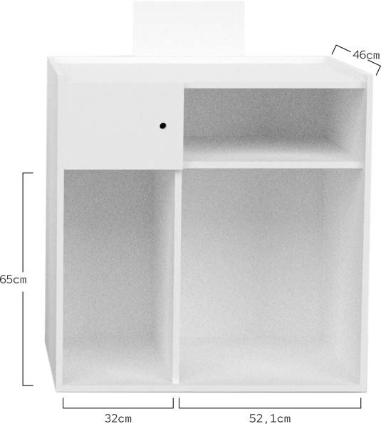 Mobile reception per parrucchieri o barbieri. La struttura del mobile è realizzata in truciolato ad alta densità, rifinita con lamina di melamina bianca e con bordi in PVC rivestiti con colla di poliuretano per una perfetta tenuta. Il piano superiore e il pannello frontale sono decorativi e rifiniti in bianco.