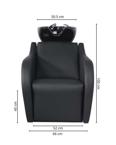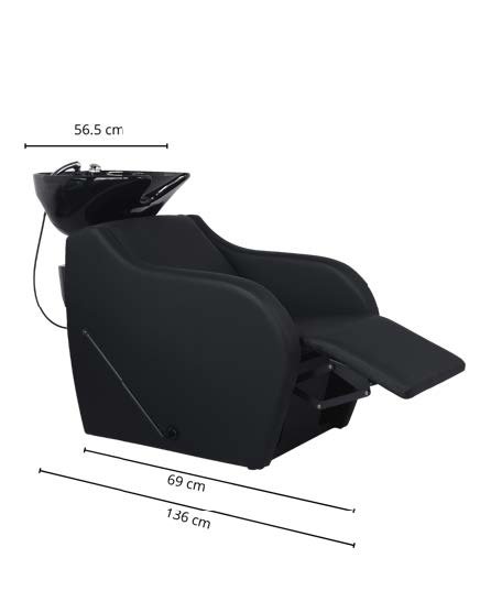 Poltrona lavatesta con poggiapiedi ribaltabile in un unico pezzo con leva manuale integrata, ideale per il comfort del cliente durante trattamenti di una certa durata. Mobile con struttura interna in metallo. Seduta e schienale con molle per maggiore comodità. Lo schienale ha un’imbottitura extra nella zona lombare. Vasca in ceramica profonda bianca o nera, regolabile con sistema basculante. Rubinetteria monocomando di qualità con tubazioni in acciaio inox. Doccetta cromata con tubo in poliammide.