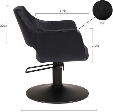 Poltrona da styling confortevole con schiuma in poliuretano ad alta densità e spessore, con struttura interna in metallo. Base rotonda molto sottile per un maggiore comfort del professionista, rifinita in metallo cromato nero. Pompa idraulica bloccabile di alta qualità con freno. Rivestimento nero.