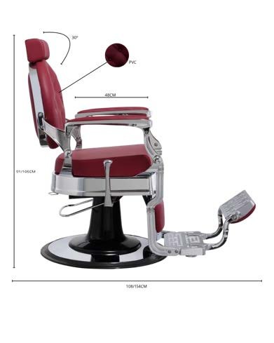 Poltrona da barbiere sofisticata, con telaio interamente in metallo in alluminio iniettato. Base rotonda e struttura completa con finitura cromata argento. Poggiapiedi reversibile.