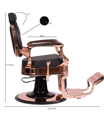 Poltrona da barbiere sofisticata, con telaio interamente in metallo in alluminio pressofuso. Base rotonda e struttura completa con finitura cromata oro rosa.
