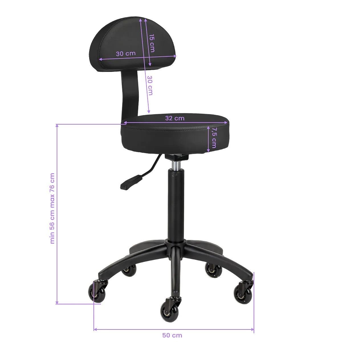 Regolazione altezza: meccanismo a gas con range da 56 cm a 76 cm per adattarsi alle diverse esigenze dell’operatore. Rotazione a 360° per facilità di movimento e manovrabilità durante ogni trattamento.