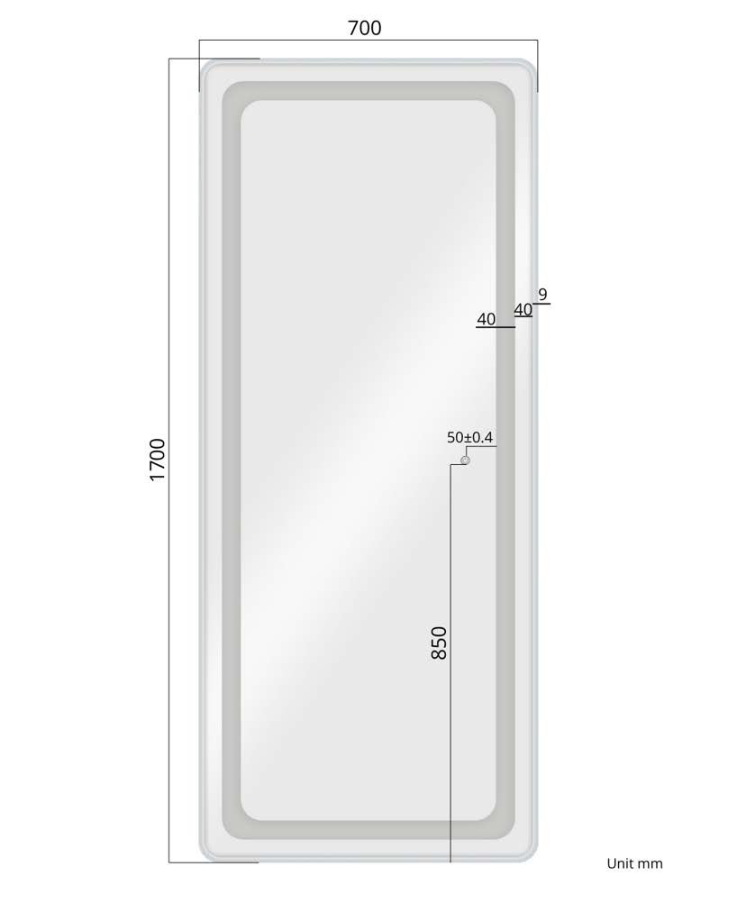 Specchio da toeletta rettangolare da 170×70 cm con illuminazione LED frontale integrata. Dotato di una guida luminosa da 4 cm con doppia striscia LED interna, garantisce un’illuminazione uniforme lungo tutto il perimetro dello specchio, eliminando ombre o aree meno illuminate.