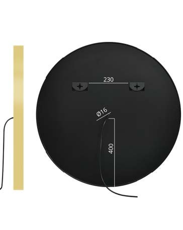 La cornice laterale in alluminio è disponibile in finiture nero, argento o oro e include ganci metallici posteriori per un’installazione semplice.